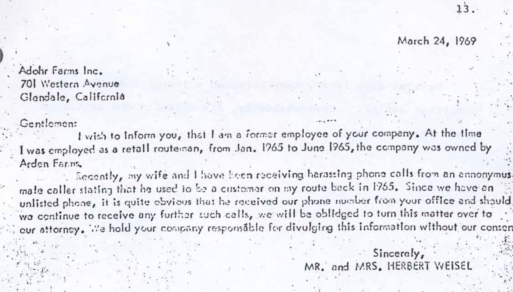 Bugliosi, it seemed, was convinced Herbert Weisel had been the biological father of his son. “According to the milkman's wife’s deposition,” said O’Neill, “Gail [Bugliosi] said to the milkman's wife, Mrs. Weisel, my husband is ill, mentally ill...We know your husband's not the father. And she said, well if you're not leaving him or you're not getting help yourself and I have no pity for you, something like that. And she shut the door in her face.”
